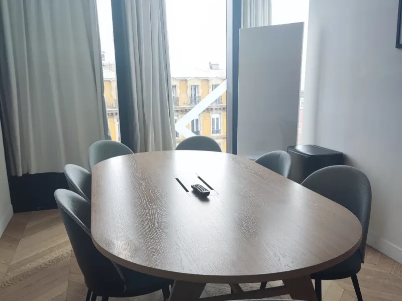 Welcome to our bright and modern conference space in our hotel, perfect for hosting seminars, workshops, or small meetings in the heart of Nice. This professional venue comfortably accommodates up to 6 people and offers a panoramic city view that inspires creativity and focus.