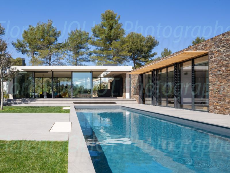 At the bottom of Sainte Victoire and 5 minutes from Aix en Provence, this architect-designed villa open to the exterior offers an ideal setting for professional events.