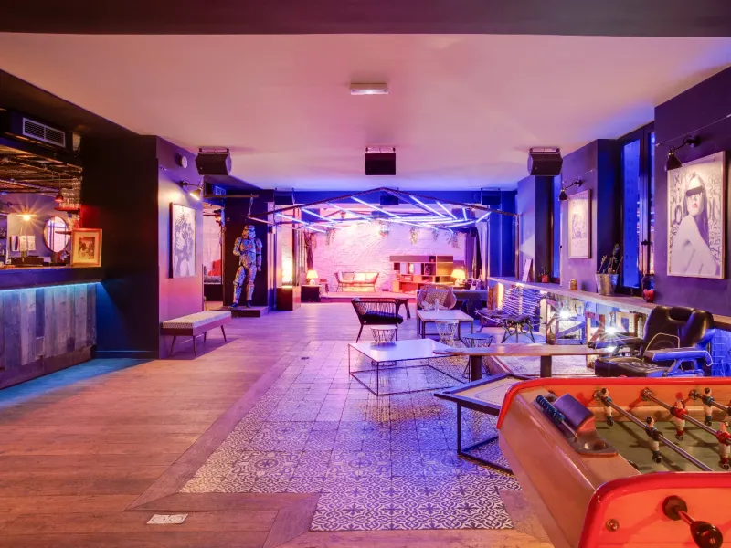 From the layout of the venue and its various spaces (the bedroom, the gaming corner, the bar, the stage, the smoking room and its indoor bar) – which allow for the organisation of event activities – to its and technical equipment (kitchen, L-Acoustic sound system, LED matrix lighting rig, microphones, video projector…), this uniquely designed venue can adapt to any type of event and is sure to delight your guests.