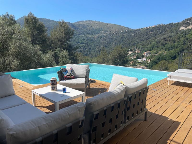 Mountain view terrace with infinity pool not overlooked