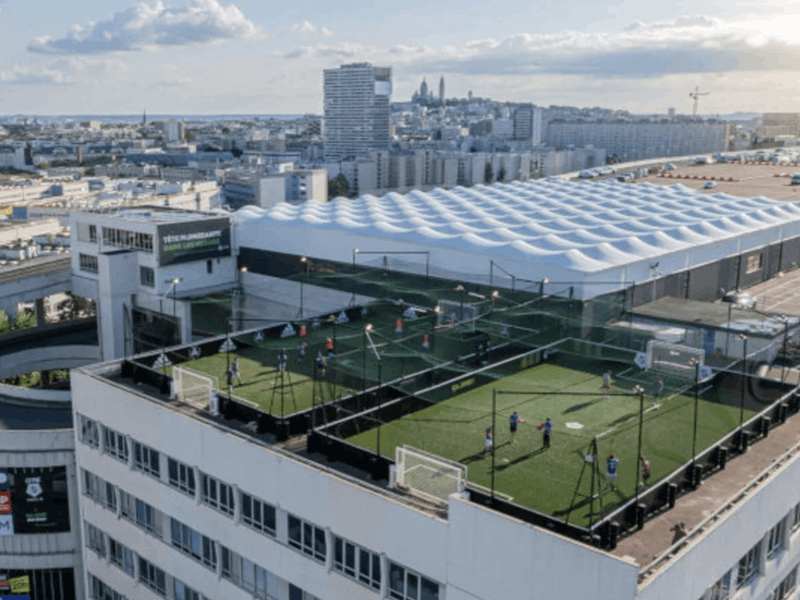 The Center, located at a height of 39 meters with a view of the Eiffel Tower and the Sacré Cœur, has 6 indoor Football pitches and 2 outdoor pitches.
