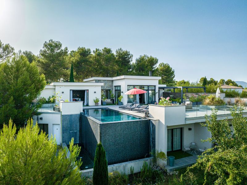 A prestigious 5-star 550 m² villa with 100 m² indoor spa, 260 m² terrace and 3000 m² of wooded grounds, located in one of the most beautiful residential areas (Domaine les Vautes) north of Montpellier.