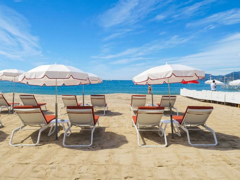 Wines from large wineries and local producers accompany seashells that are savored in the sand facing the Bay of Cannes and the Lérins Islands.