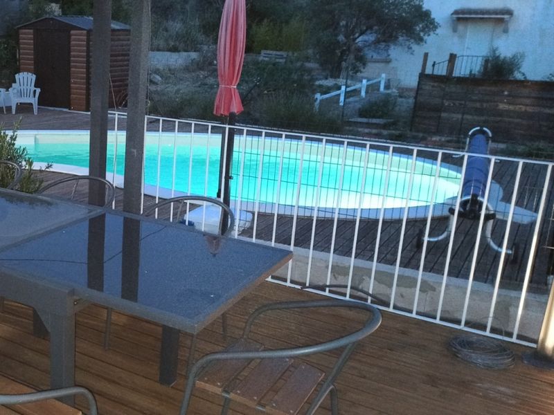 The swimming pool is located at the back of the house, relaxation area equipped with: shower, WC, fridge/freezer, coffee maker, toilet. Gas barbecue and eating standing up (optional).