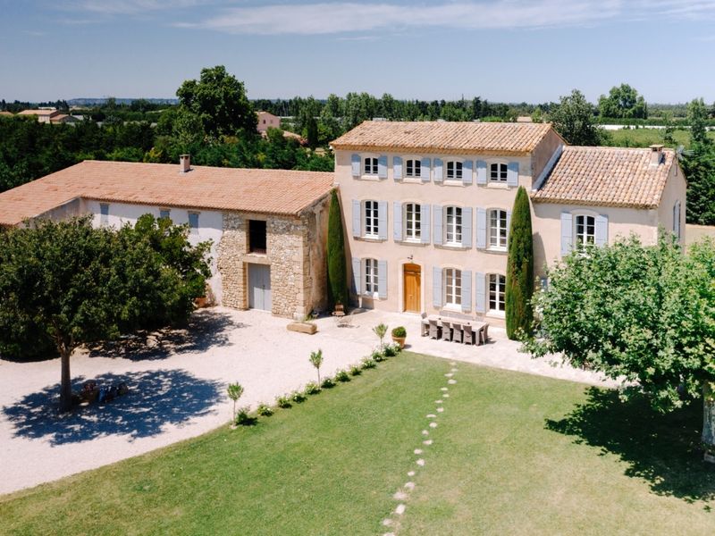 Opt for the Bastide and its enchanting setting. In the heart of the Provencal countryside, this elegant family home, with large windows and blue shutters, overlooks a landscaped park with a beautiful swimming pool and a sublime lavender field.