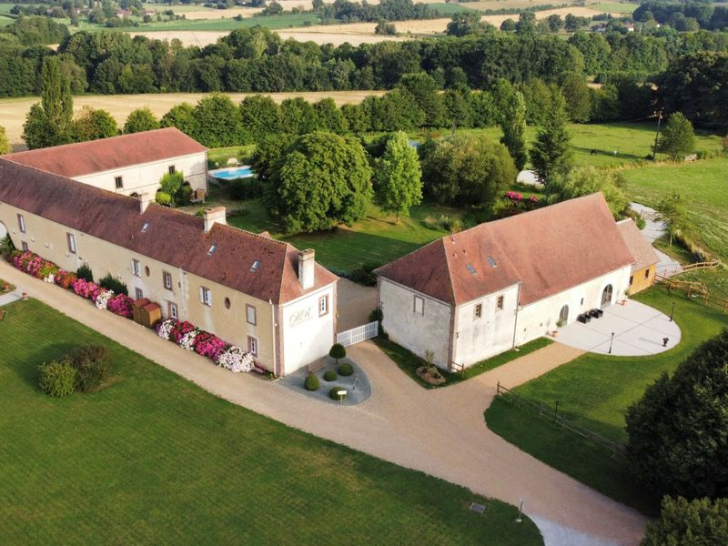 The Domaine is an exceptional property with 800 m² of interior space divided into two reception buildings (the main building and the reception barn), nestling on a hillside and surrounded by 10 hectares of greenery with a 360-degree panoramic view of the Perche countryside.