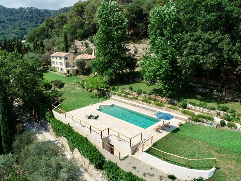 High above the French Riviera, where winding paths of storied stone give way to the rich verdure of the French countryside, this stately Legacy Farmhouse reveals itself.