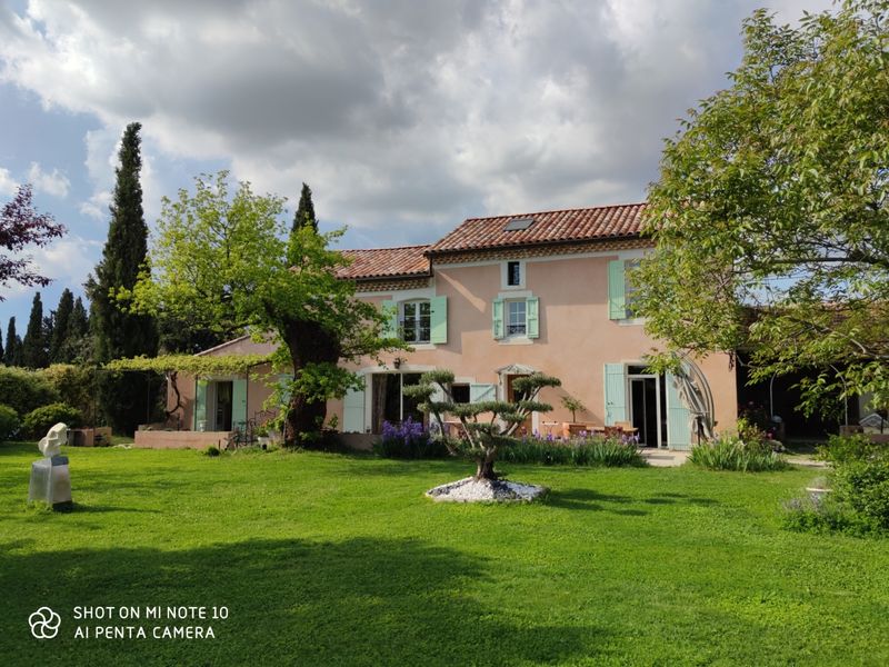 Magnificent old farmhouse of 300 m² located near Avignon with a very well planted and flowered garden with lots of shade, large swimming pool and very beautiful pergola near the swimming pool with its adjoining lounge.