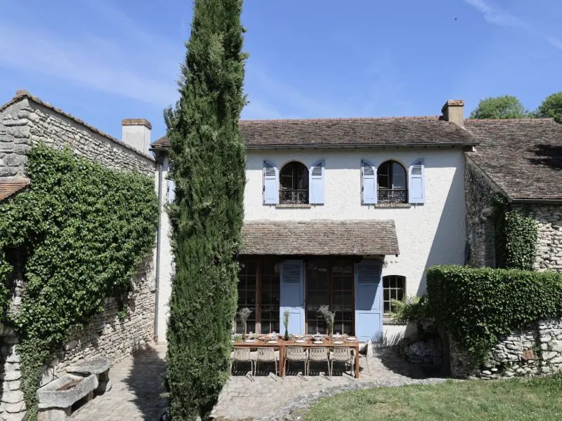 The exterior is part of a renovated farmhouse, just 45 minutes from Paris. It's the ideal venue for your private events, meetings or green seminars.