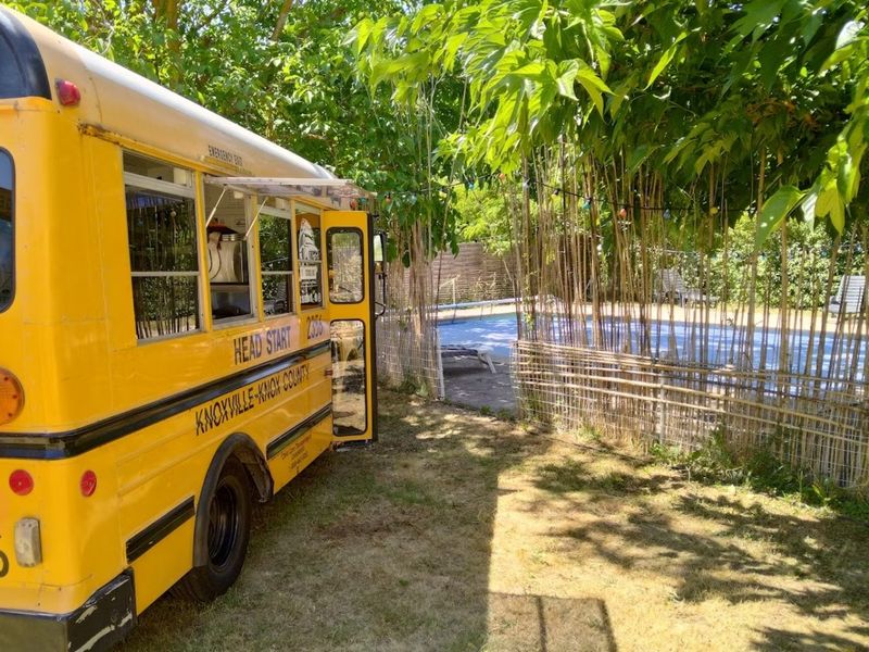 Nous avons ete tres satisfaits de ce lieu. Les hotes ont ete attentionnes et proactifs en anticipant nos besoins. Le lieu etait parfait, car il etait accessible depuis le centre-ville, mais suffisamment isole pour que nous nayons pas a nous soucier du bruit. La nourriture du Schoolbus etait tres savoureuse, et lambiance detendue dans le jardin avec la piscine et le bus scolaire etait exactement ce que nous recherchions. Merci Bastien et Anthony !
