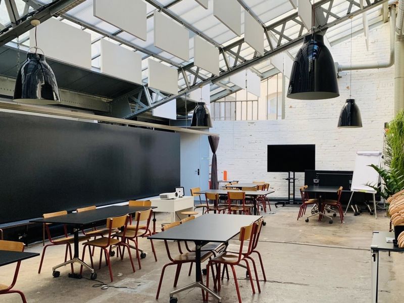 Located in the heart of Paris, behind the Centre Pompidou. The entire space is 230 m2 and consists of a 90m2 modular, self-contained platform entirely dedicated to collaboration, where you can organise workshops, training courses, seminars, team meetings or any other type of event. This former textile factory has a glass roof over its entire surface area, so it gets plenty of natural light. Fully modular, it can be adapted to your specific needs in terms of use of space or activities.
