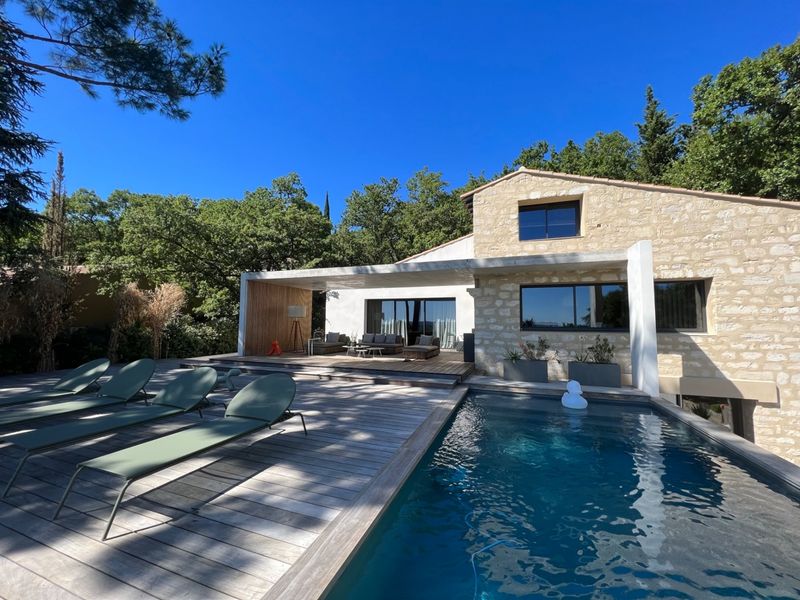 This villa, completely renovated in 2018 by an interior designer, offers an extraordinary view of the Alpis. Its wooden terrace of more than 250 m² and its infinity pool offer a haven of peace among the loaves and green chains. Ideal for shooting, exceptional dinner, filming, private day or even relaxing by the pool.