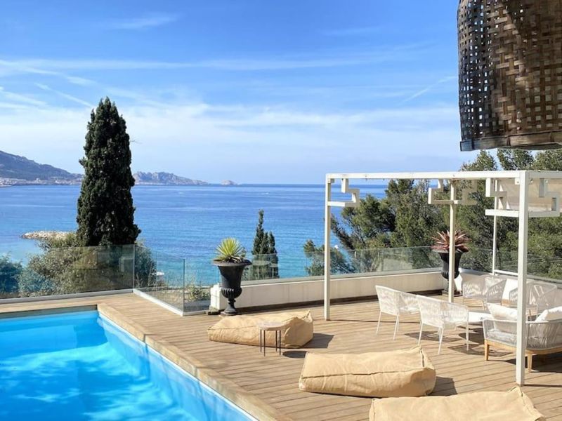 In the heart of the Roucas Blanc Bay, the villa invites you to escape and enjoy the sweetness of life in peace and privacy, while enjoying the dazzling panorama open to the Mediterranean and the Frioul Islands. Enjoy life in the Marseillaise with a pétanque court and its splendid sea view.