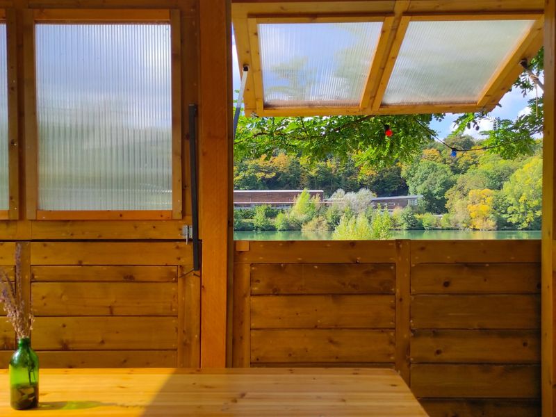 Our space is located directly on the banks of the Seine, at the end of a pedestrian path, ideal for outdoor meetings. This atypical place offers around fifty seats indoors and thirty outdoors, with a view of the Seine.