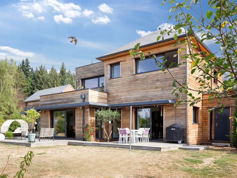 A contemporary wooden house with a lovely outdoor space, 3 terraces and a garden.